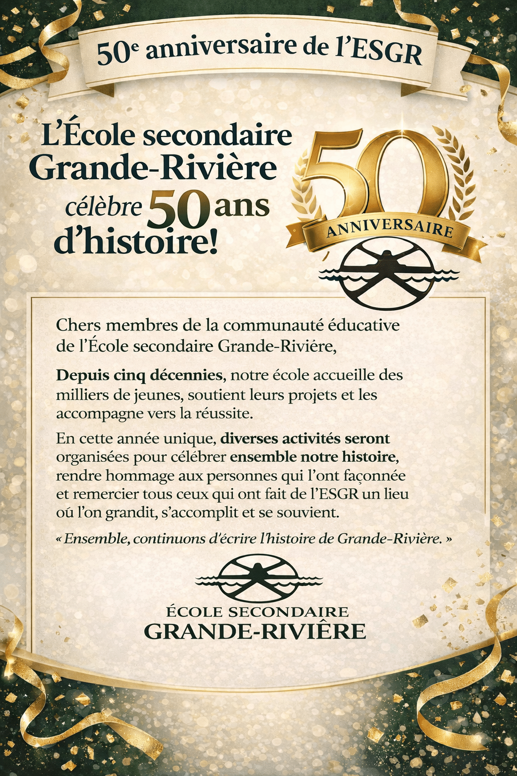 L'école secondaire Grande-Rivière célèbre 50 ans d'histoire!